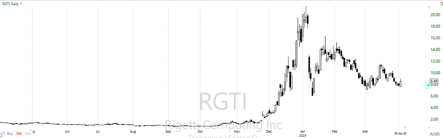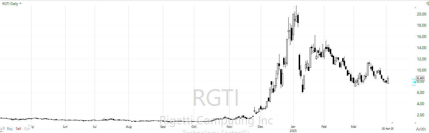 D-Wave Quantum, IonQ, Quantum Computing, and Rigetti Computing provide hardware and software solutions for quantum computing. They’re all public companies, and their stocks are insanely volatile.