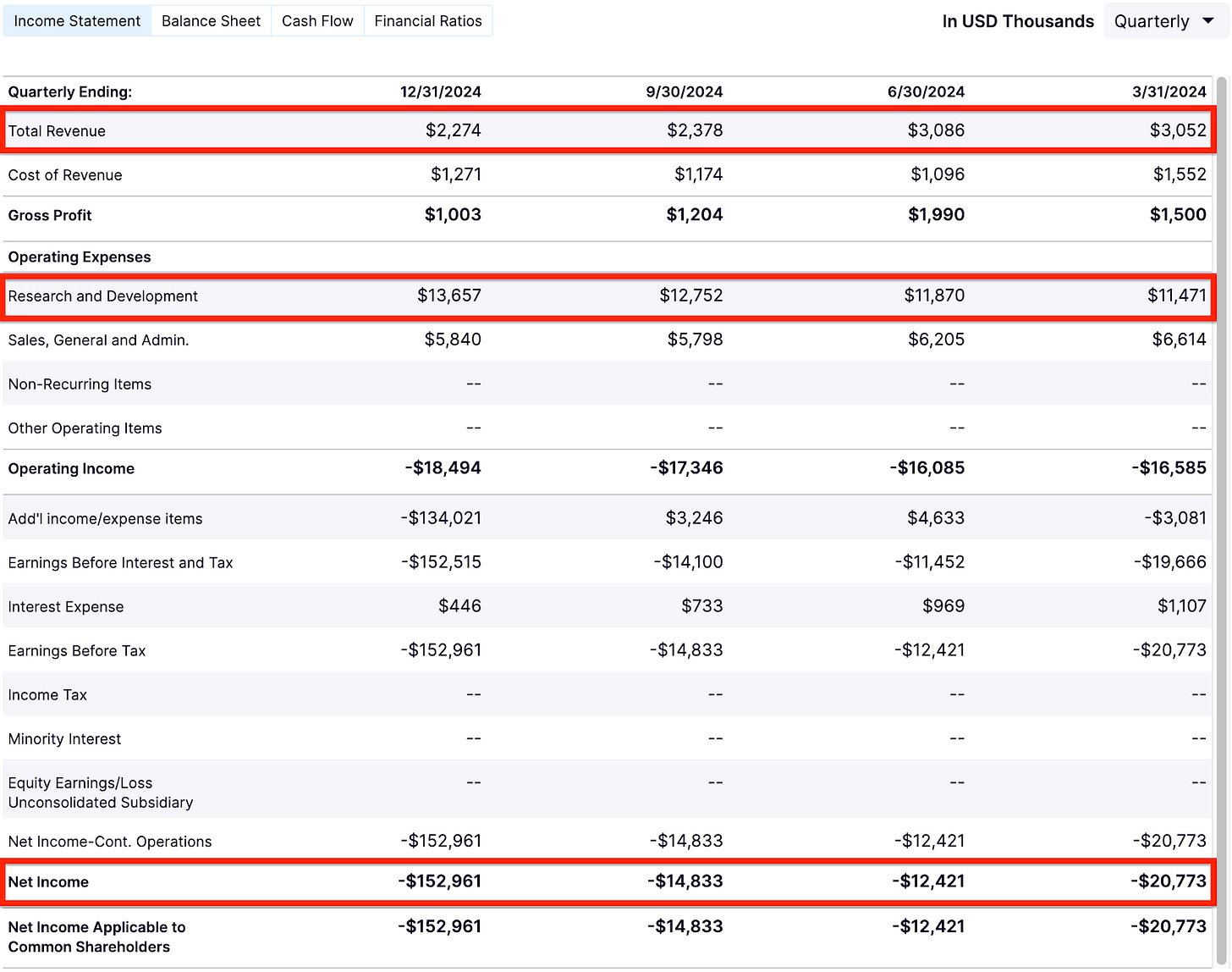 All of them are burning money, have tiny inconsistent revenues and significant debt, and invest in R&D like crazy. Here are the financials of Rigetti Computing: